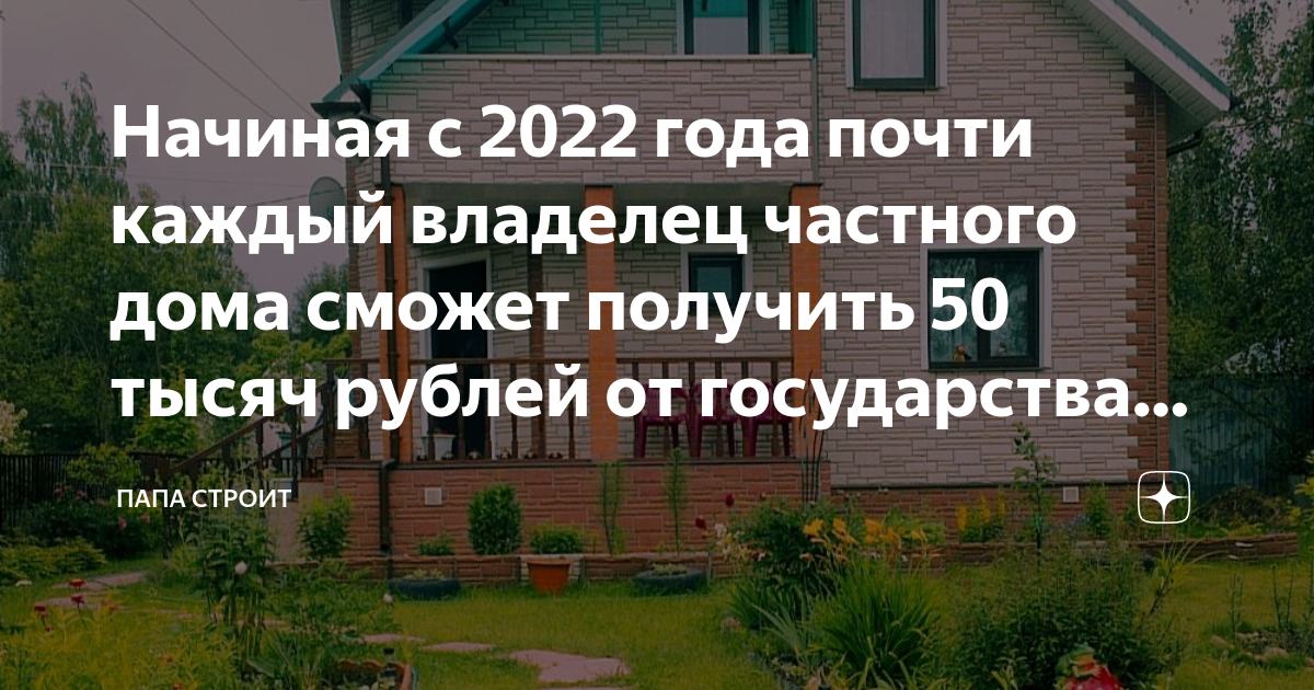 Источник: https://zen.yandex.ru/media/s_versia2/nachinaia-s-2022-goda-pochti-kajdyi-vladelec-chastnogo-doma-smojet-poluchit-50-tysiach-rublei-ot-gosudarstva-delius-61b10ec1d0104109f998c99e