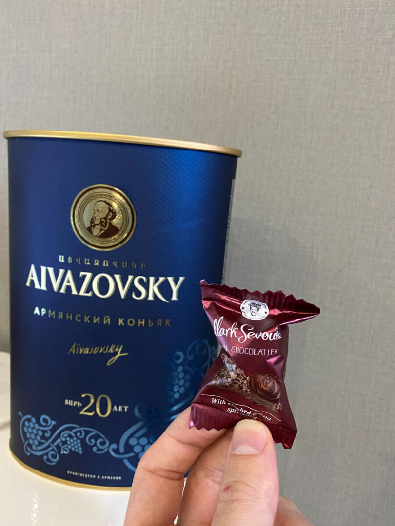 Повторюсь, при опробировании ароматистой линии у меня разыгрался нешуточный аппетит, а еще по случаю у меня в баре завалялись настоящие армянские конфеты, которые прекрасно должны подойти к этому коньяку.
