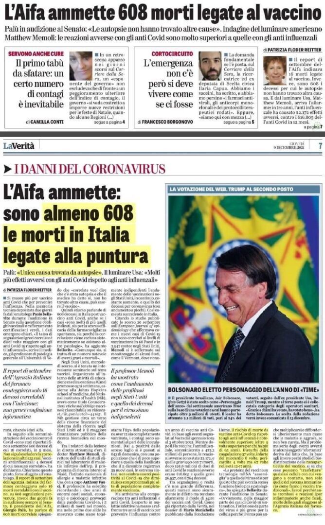 В Италии от вакцины по данным AIFA умерло 608 человек, фактически гораздо больше. От вакцины умерло больше чем от ковида