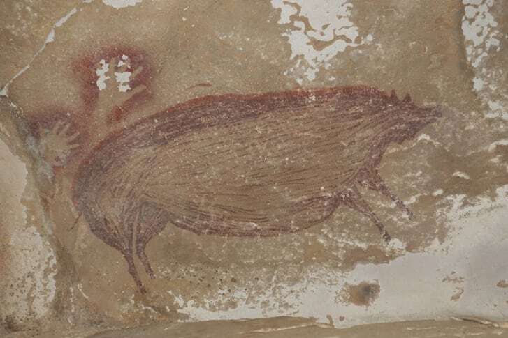 После замечательной находки в индонезийской пещере на острове Сулавеси изображение бородавчатой свиньи считается самым старым из сохранившихся изображений животного. По крайней мере, 45 500 лет назад археологи идентифицировали бородавчатую свинью на произведении искусства как таковую из-за ее роговидных выступов; на сцене цвета красной охры изображены всего три свиньи, одна из которых, возможно, наблюдает за дракой между двумя своими товарищами.