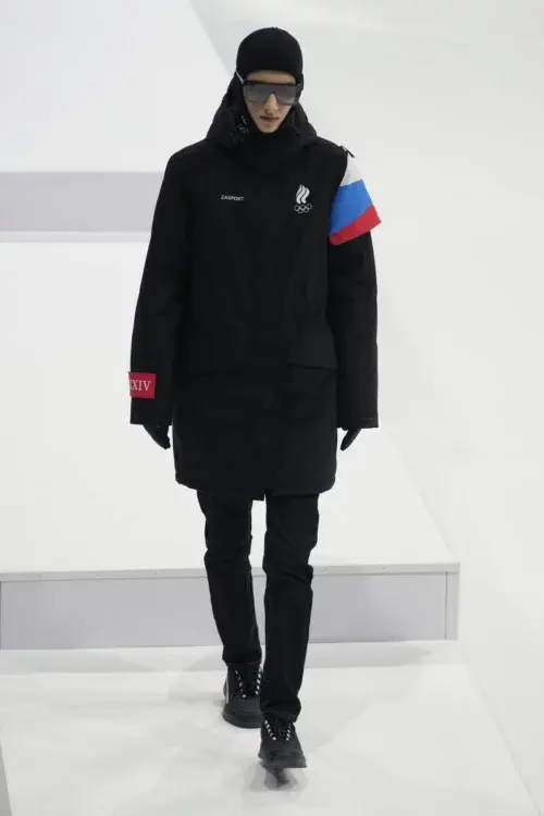 На зимней Олимпиаде в Пекине российские спортсмены будут выступать под флагом Олимпийского комитета России, поэтому официальной символики страны на форме нет. Так как российская символика на форме запрещена, на фотографиях можно увидеть одежду с флагом страны. Вероятнее всего, эти элементы уберут во время спортивного мероприятия, но оставят для розничной продажи.