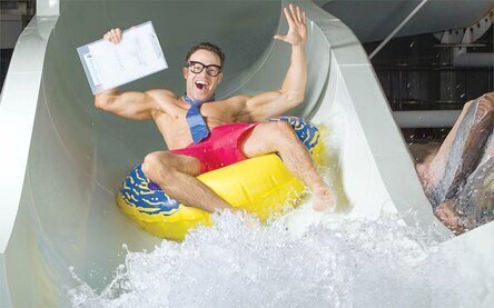 Чтобы быть уверенным, что водные горки в аквапарках безопасны, кампании нанимают специальных людей – тестировщиков горок. Они катаются на всех водных спусках, за счёт чего им платят большие деньги.
