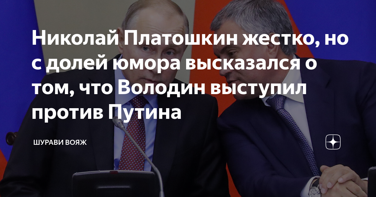 Источник: https://zen.yandex.ru/media/id/5e721d0763a0527b2b467968/nikolai-platoshkin-jestko-no-s-dolei-iumora-vyskazalsia-o-tom-chto-volodin-vystupil-protiv-putina-61b1dc5f39e932560feeaa42