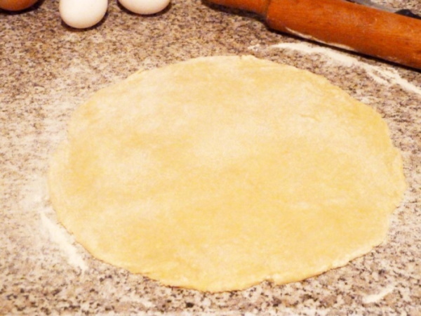 Для этого в глубокой миске разотрите муку, соль и размягченное сливочное масло. У вас должна получиться крошка. Добавьте к сливочно-мучной крошке одно яйцо. Тщательно все перемешайте. Месите тесто до тех пор, пока оно не начнет отлипать от стенок миски. Сформируйте из теста шар и заверните его в пленку. Положите тесто в холодильник на 30 минут.