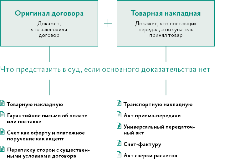 Эти двусторонние документы, которые оформили с контрагентом, помогут, если товарной накладной нет или в ней есть недостатки. Собирать все эти документы не обязательно. Чтобы доказать, что передали товар покупателю, а он его принял, достаточно одного из этих документов