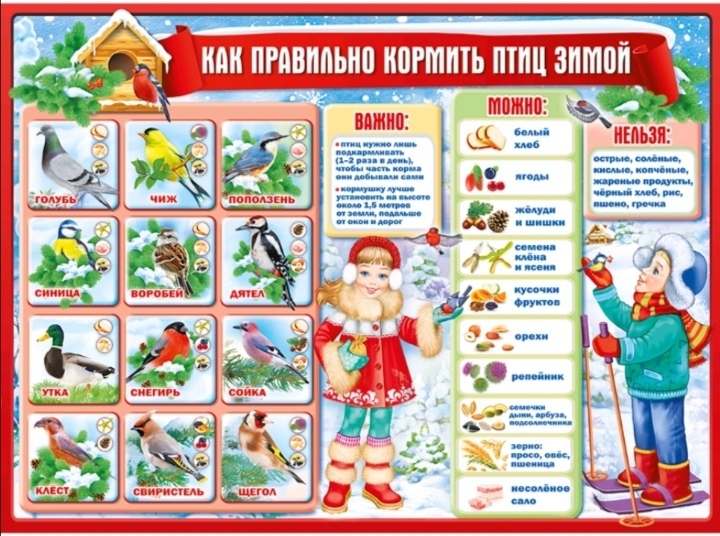 Дети очень любят кормить птиц, отслеживают, чтобы кормушки были наполнены. Крупу и сама покупаю и родителей прошу поспособствовать.