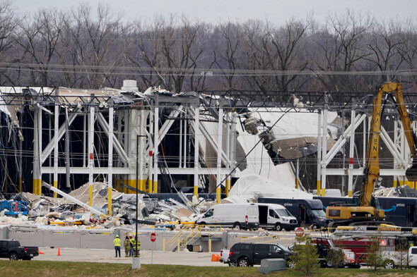 Во время шторма разрушился склад компании Amazon в Иллинойсе. Рухнула крыша и часть стен, в результате погибли не менее трех человек.