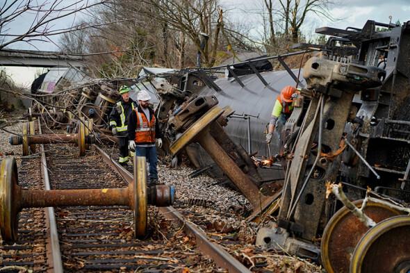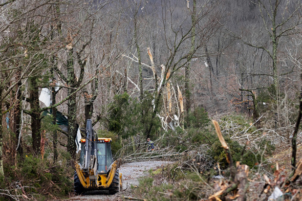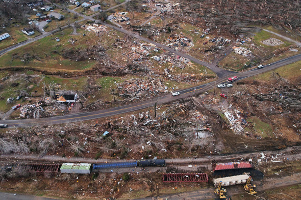 Рабочие в Кентукки разбирают завалы после того, как с рельсов из-за торнадо сошел поезд