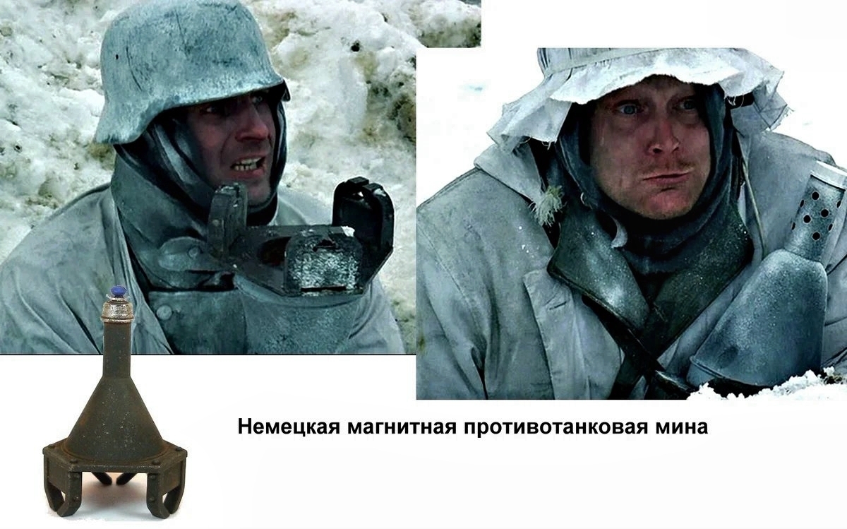 Очень хорошо показано применение немецких магнитных противотанковых мин. Хотя, на мой взгляд, наши танки в этих эпизодах двигаются уж очень медленно. Да и где же наша пехота?