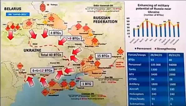 Разумеется - в практически неминуемом российском вторжении. Которое американцы сами и выдумали, на основе спутниковой фотки с техникой за 250 км. от границы. Потом сами же запустили утку про 100 тысяч бурят, бьющих копытами у пограничного столба. Заставили весь мир в ЭТО поверить. Кончилось тем, что сами поверили. Смотрите ниже картинку: