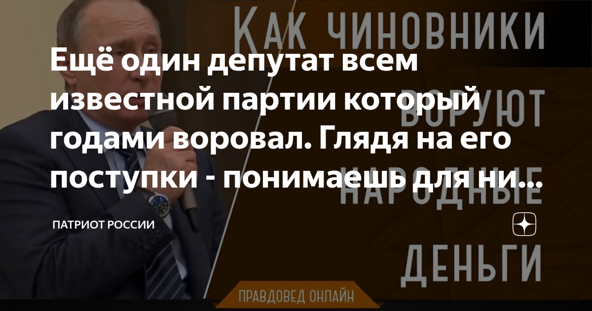 Источник: https://zen.yandex.ru/media/682313alla/esce-odin-deputat-vsem-izvestnoi-partii-kotoryi-godami-voroval-gliadia-na-ego-postupki-ponimaesh-dlia-nih-net-nichego-sviatogo-61b493e17cd07a7c3548d151