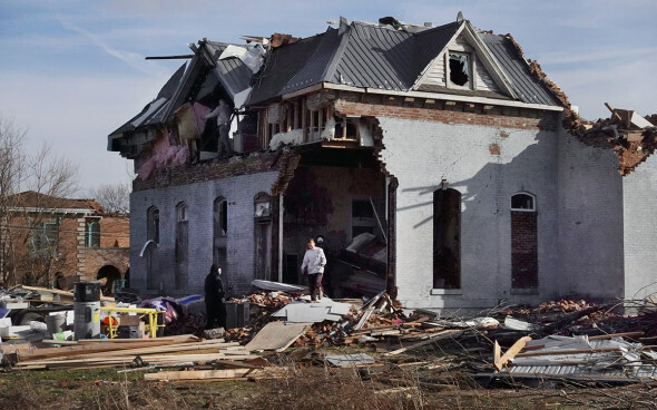 В городе Мэйфилд на западе Кентукки зафиксировали самые серьезные последствия — из-за торнадо там обрушилась крыша свечного завода. Внутри здания предприятия находились 110 человек, по словам губернатора, 40 из них нашли живыми, о состоянии остальных пока неизвестно. Бешир назвал катаклизм с четырьмя торнадо в 12 округах самым разрушительным за всю историю штата.