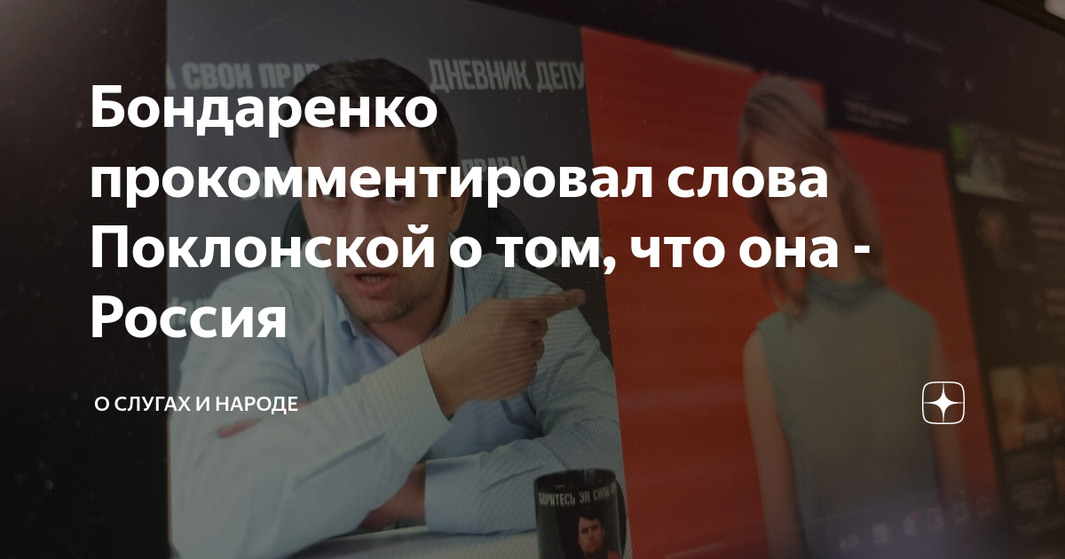 Источник: https://zen.yandex.ru/media/ventilyator/bondarenko-prokommentiroval-slova-poklonskoi-o-tom-chto-ona-rossiia-61b5c36485ccb96c08b31fe0