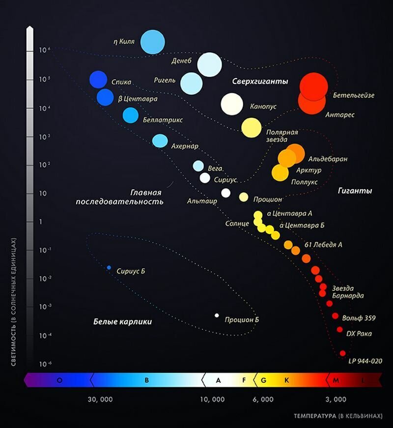 Мы можем использовать наши знания об особенностях эволюции звёзд, термоядерных реакциях в них и их гибели. Нам достоверно известно, что все звезды, когда они ещё горят и сжигают "топливо" (например, проводят синтез гелия из водорода), имеют определенную яркость и цвет, и они сохраняют эту яркость и цвет в течение определенного времени: до тех пор, пока в их ядрах не начнёт заканчиваться топливо.