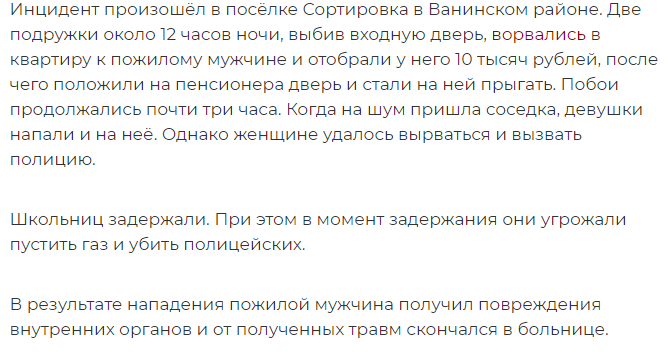 В Хабаровске две школьницы вломились в квартиру к пенсионеру ограбили и уб*или пенсионера.