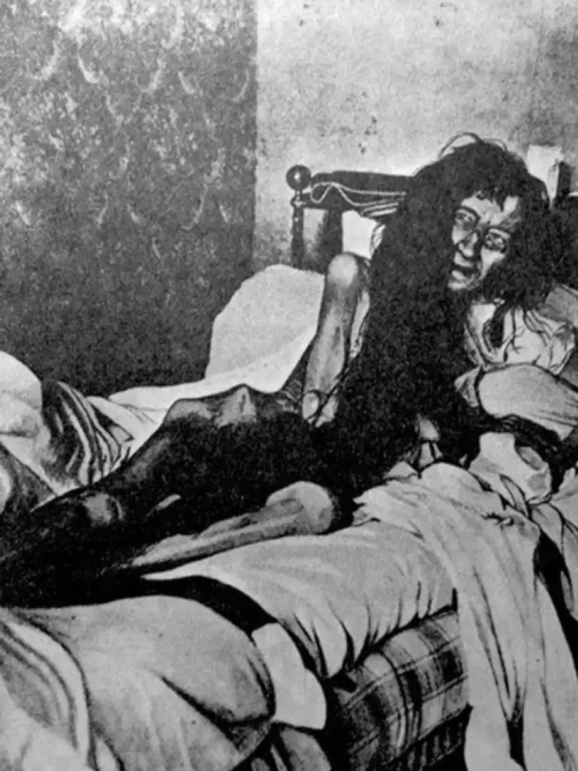 Зловоние буквально оттолкнуло их от дверей — в тесной комнатке царил абсолютный мрак: окна были заколочены. На гнилом соломенном матраце среди собственных экскрементов и осклизлых остатков пищи лежала, укрытая плотным ковром темных волос, иссохшая старуха. В нее превратилась красавица Бланш. Теперь ей было 49 лет, при росте 166 сантиметров она весила не больше 26 килограмм.