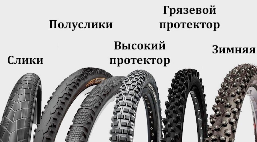 Место использования велосипеда и тип катания определяются рисунком и высотой протектора покрышки. Глубокий протектор обеспечивает надёжное сцепление с бездорожьем, травой, пересечённой местностью, а гладкие покрышки помогут выжать максимум скорости на ровных гладких дорогах.