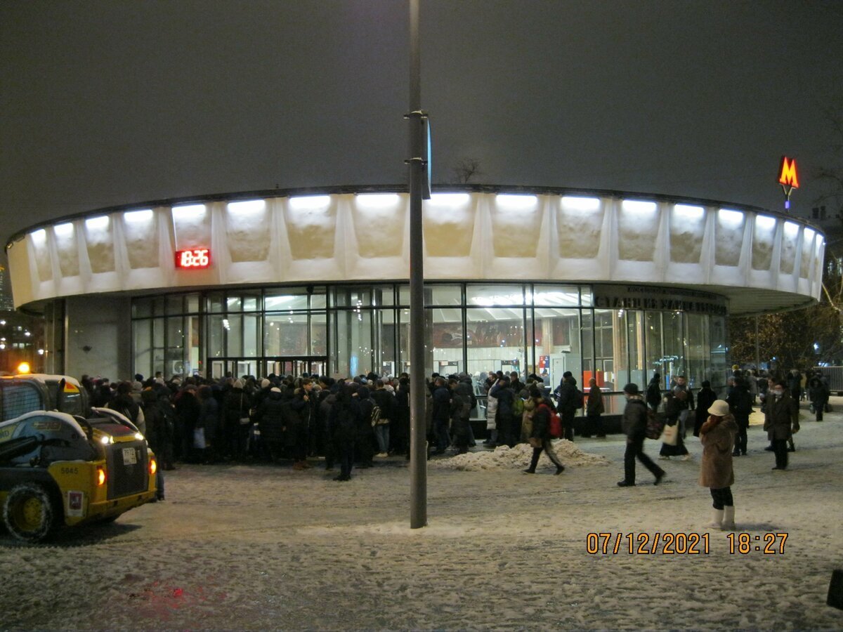 7 декабря 2021 года. Примерно 18: 20. Я на метро не езжу около полутора лет, уже. Пересел на наземный транспорт, что бы из за масок не цеплялись.
