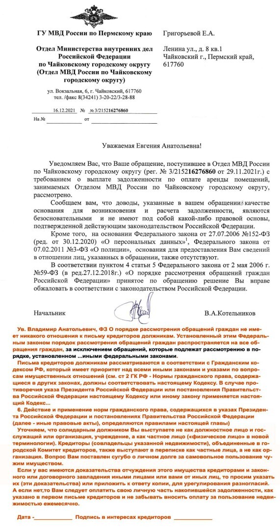 Переписка с овд полиции по поводу долга. Но наше дело как асфальтоукладчик — доводить переписку с должником до признания им долга в ответе или по умолчанию (конклюденция)