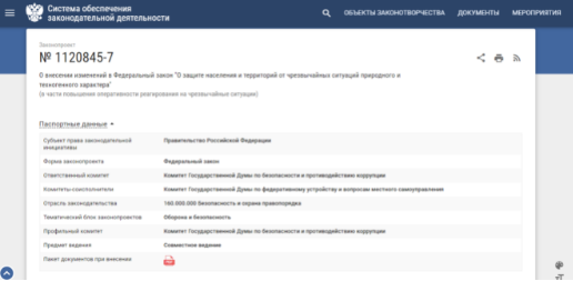 Законопроект устанавливает обязанность федеральных органов исполнительной власти обеспечивать постоянный доступ МЧС РФ к информационным ресурсам Единой государственной системы предупреждения и ликвидации чрезвычайных ситуаций (РСЧС).