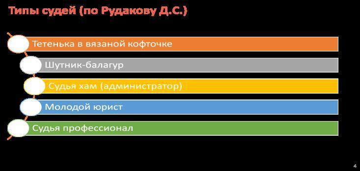 «Судья-профессионал» - лучшая из возможных категорий. Такие судьи работают и по духу, и по букве закона, им одинаково важны процедуры и результат и новый опыт. «Судьи-профессионалы» готовы пойти на эксперимент, с ними легко говорить на одном языке. Их любят и прокуроры, и адвокаты.