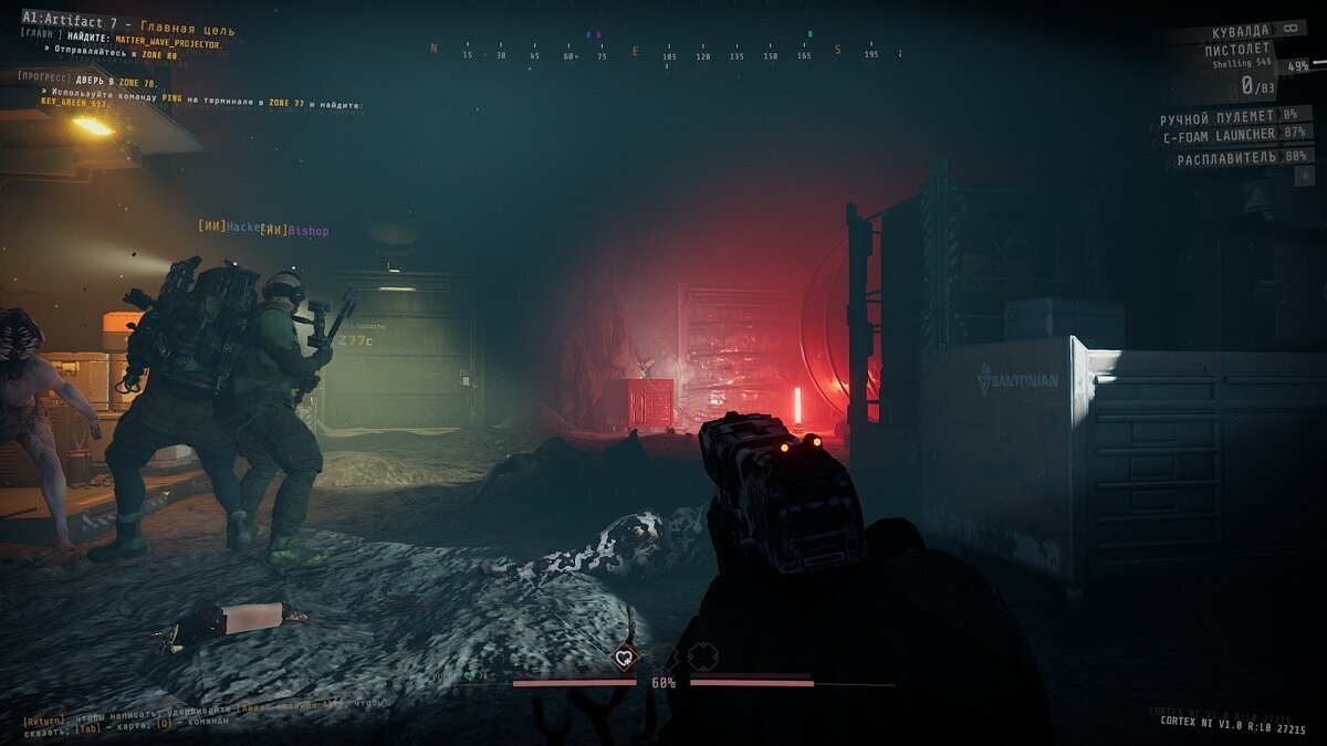 В GTFO есть ещё одна оригинальная механика, связанная с терминалами. Дело в том, что локации большие — найти вещичку, ради которой вы прибыли, не так-то просто. К счастью, на местности можно отыскать терминалы, куда вручную вводятся команды. Набрав на клавиатуре определенную комбинацию, вы узнаете, где валяются нужные ключи, и в какой области цель. Если подберётесь к объекту близко, его можно даже пропинговать.