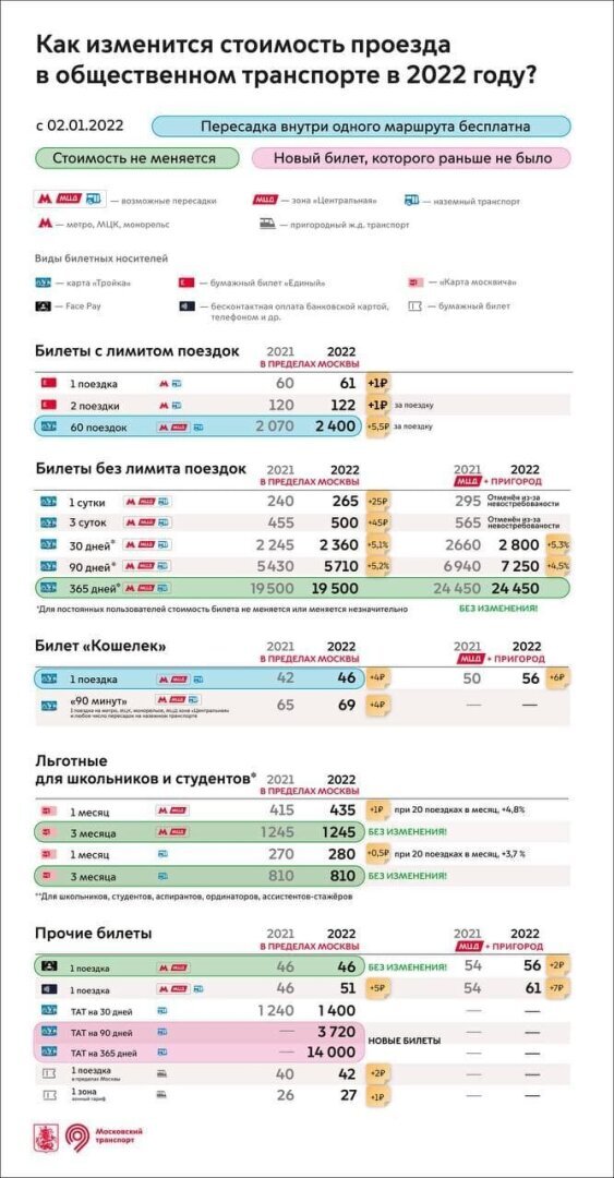 Тарифы на проезд в общественном транспорте Москвы изменятся со 2 января 2022 года. Об этом сообщает Telegram-канал столичного департамента транспорта. Тарифы на проезд в общественном транспорте Москвы изменятся со 2 января 2022 года. Об этом сообщает Telegram-канал столичного департамента транспорта.
