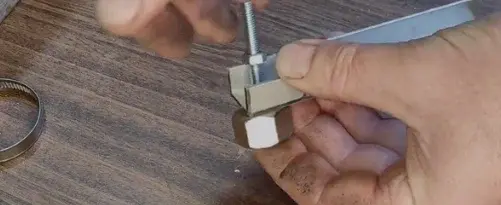 Начинаем сборку. Болт вдеваем в муфту с внутренней резьбой и гайкой притягиваем к планке.