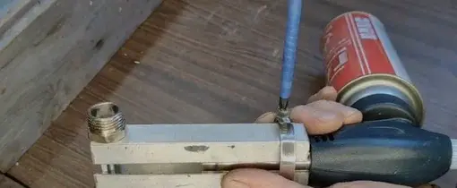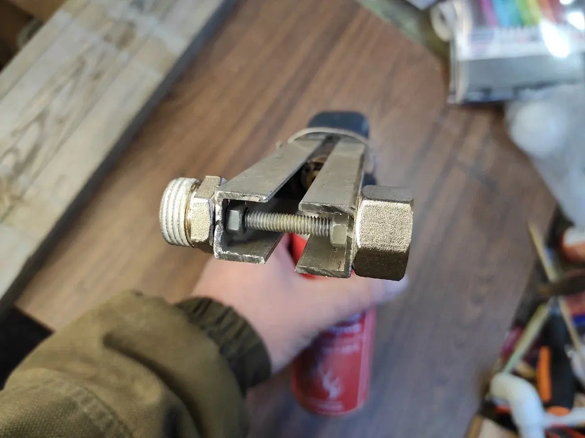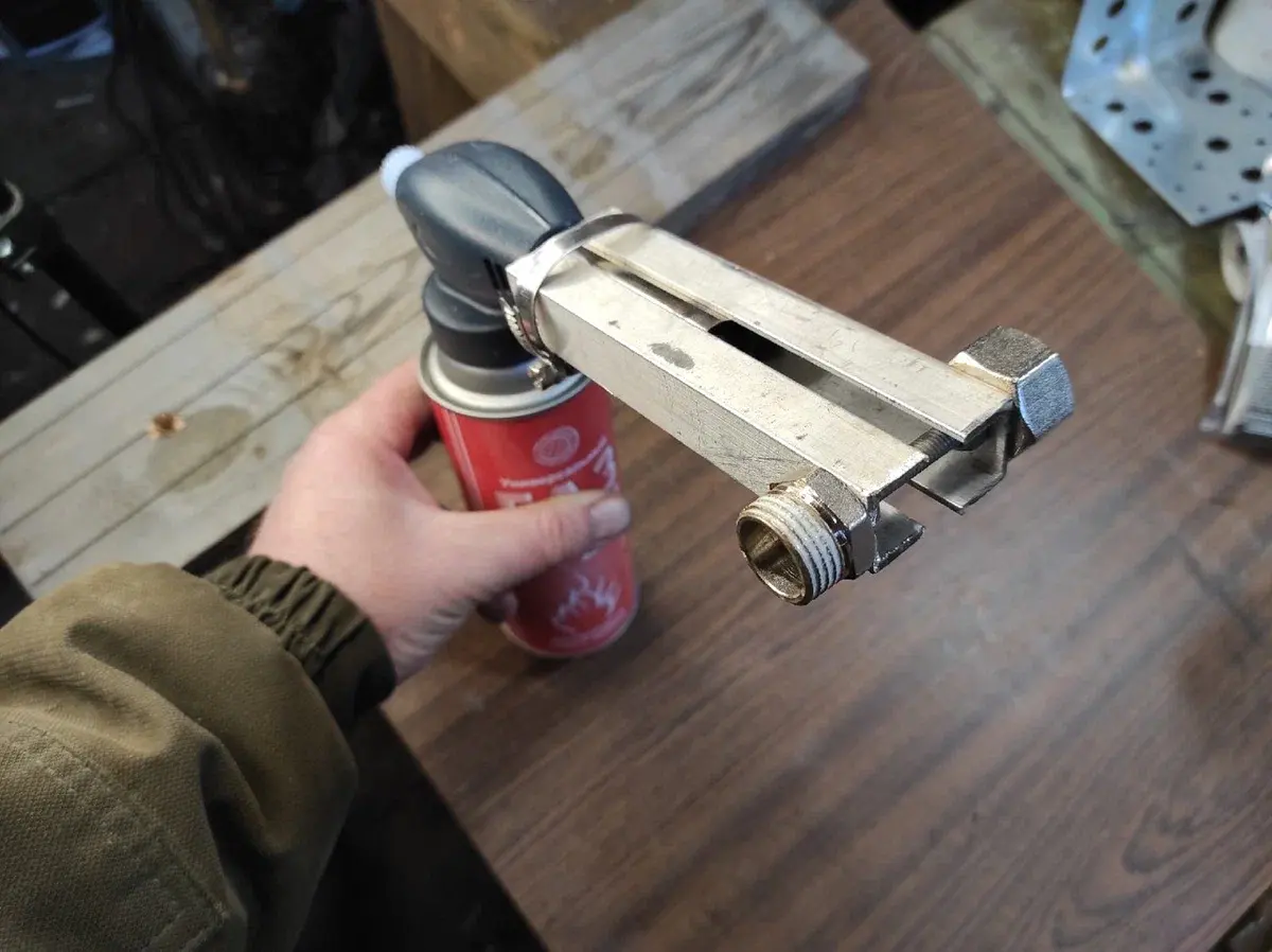 Вот и всё, прибор готов. Включаем горелку, нагревается болт, а с ним и муфты.