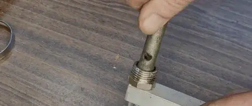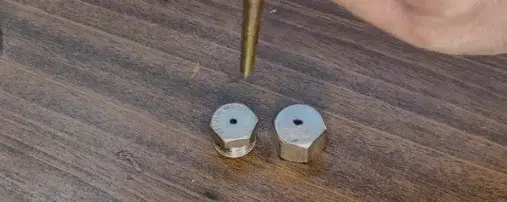 Итак, первым делом нам понадобятся две муфты с внутренней и наружной резьбой. По центру делаем отметку и намечаем керном.