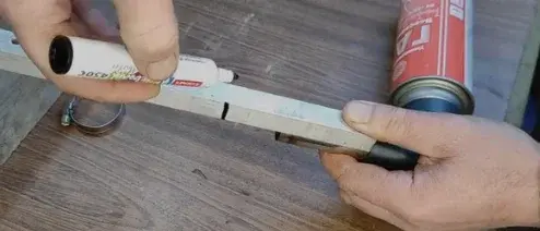 Затем понадобится П-образная железная планка. Прикладываем её к соплю газовой горелки и отмечаем длину на 5 см длиннее сопла.