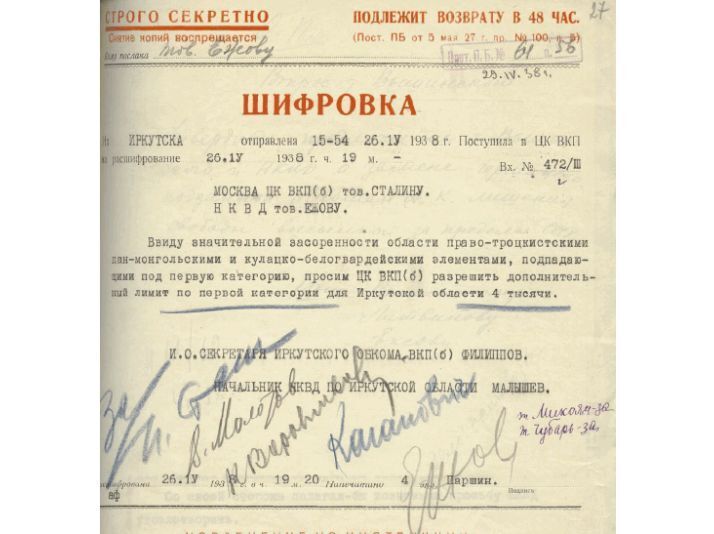 В советском государственном делопроизводстве не существовало грифа " Строго секретно". постановлением СНК от 24.04.26 г. были ведены три грифа : Совершенно секретно , Секретно, Не подлежит оглашению. На документе должны были указываться : тип документа( шифровка, донесение, записка) и гриф (секретно, совершенно секретно, не подлежит оглашению). Слово " концлагерь" в исправительной системе не употреблялось. Почти все представленные документы являются подделкой.