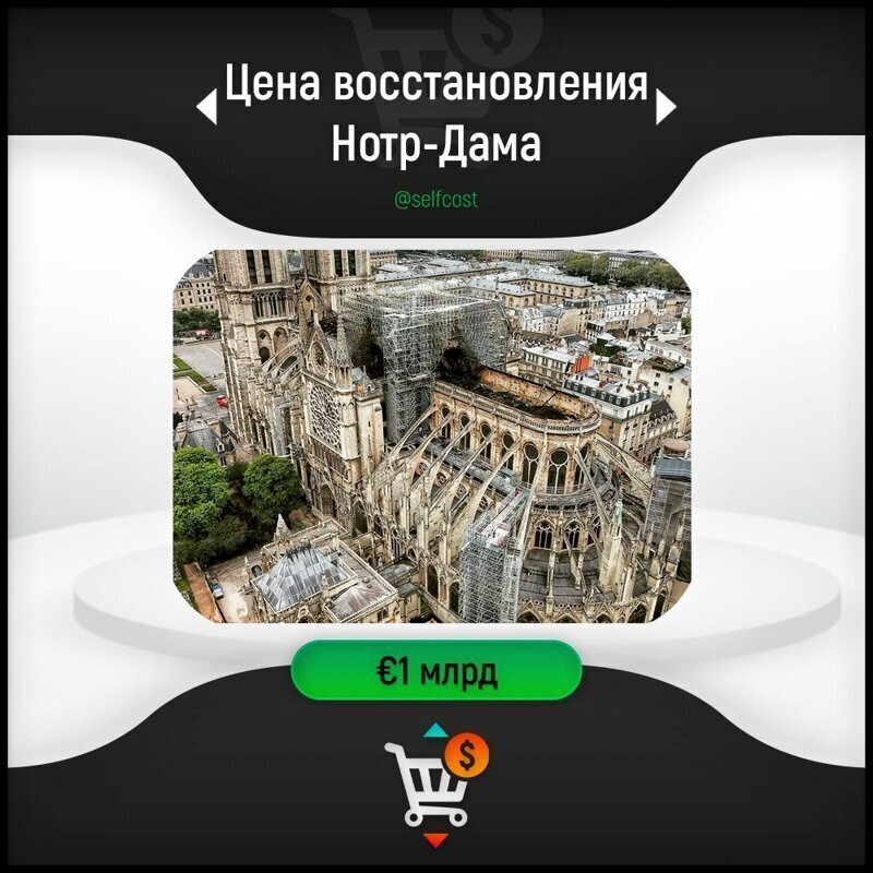 Французский архитектор Жан-Мишель Вильмотт оценил стоимость восстановления собора Парижской Богоматери в приблизительную сумму €1 млрд. По словам эксперта, существуют расценки по восстановлению свода, реконструкции обрушившегося шпиля и реставрации внутреннего убранства собора.