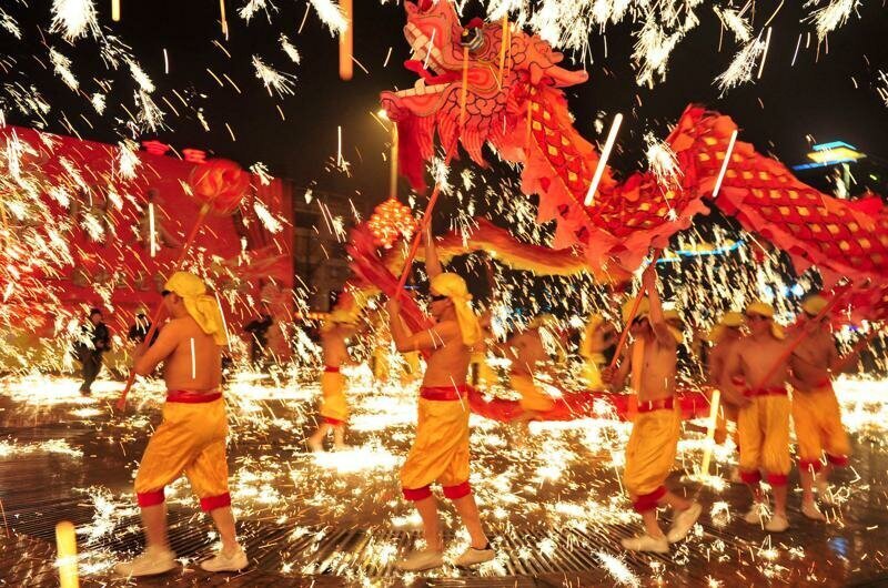 Китайский Новый год изобилует множеством различных традиций. Дома и города украшают красными украшениями – цвет, символизирующий удачу и везение, – например, красными фонариками, отгоняющими несчастья, и цзяньчжи – красными бумажными вырезами, которые вешают на стены. Фейерверки запускают как в канун Нового года, так и на следующее утро, чтобы отогнать негативную энергию.