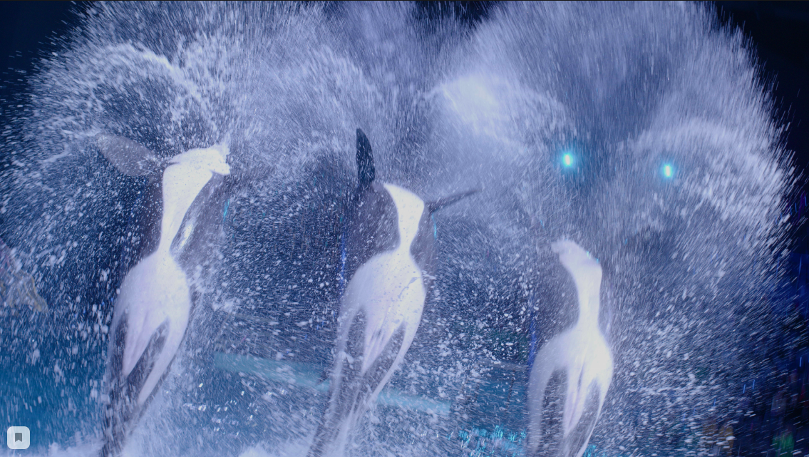 В абсолютный, незабываемый восторг, зрителей приводят косатки, рассекая водную гладь, они резвятся словно зазывая зрителей ударами гигантских хвостов по воде, скользят под водой, окатывают счастливых зрителей волнами удовольствия и брызгами воды.