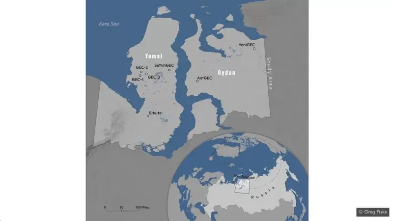 Подобные подземные трещины и осыпи, образовавшиеся в результате извержения газа, были обнаружены на морском дне Карского моря, недалеко от полуострова Ямал, и аналогичные следы были найдены в Баренцевом море. Но до сих пор, говорит Натали, на других арктических участках суши не было обнаружено кольцеобразных кратеров, подобных тем, что находятся на полуострове Ямал.