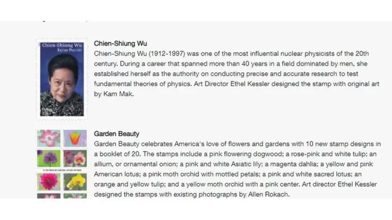 С приближением 2021 года Почтовая служба США объявила, что на одной из новогодних марок будет изображена женщина-ученый китайского происхождения Чиен-Шиунг Ву.