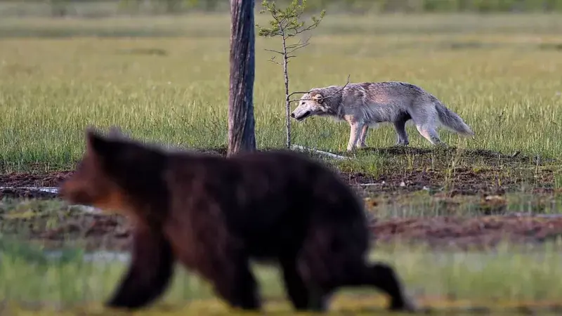 Волки часто охотятся на крупных животных, таких как лоси и бизоны, но крупные животные не поддаются и бьют и кусают, чтобы убить волка.