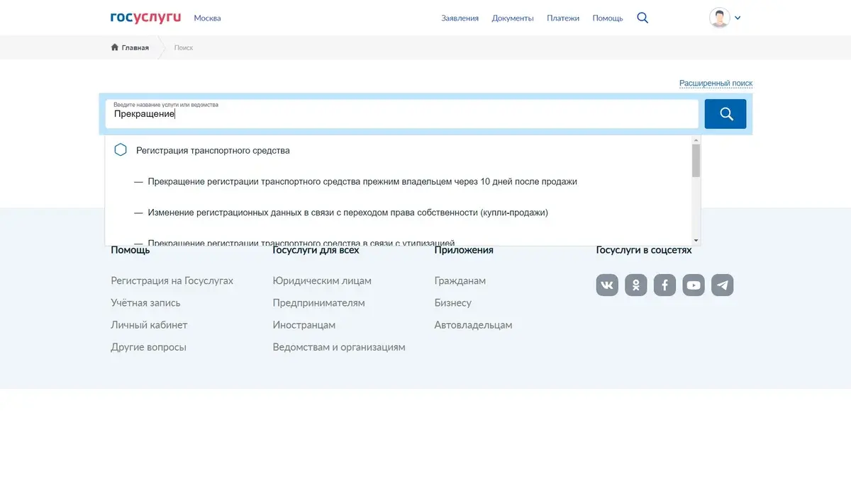 При отсутствии регистрационных действий в течение положенного срока предыдущий владелец имеет возможность самостоятельно прекратить учёт автомобиля. Для этого можно посетить МРЭО с договором купли-продажи и паспортом. Ещё проще и быстрее справиться с этой задачей позволяет сайт "Госуслуги". Сейчас у любого гражданина, имеющего подтверждённый аккаунт на портале, есть возможность дистанционно прекратить регистрацию транспортного средства.