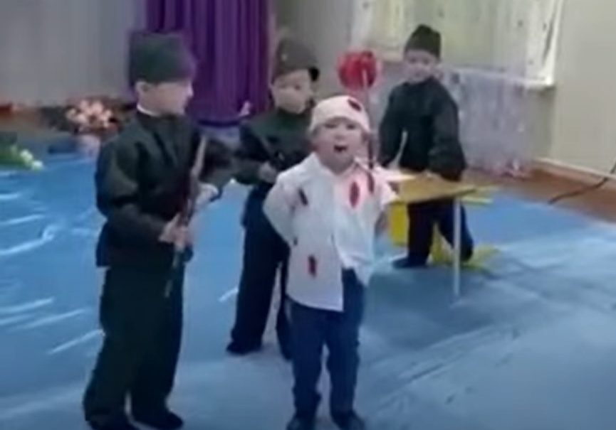 На опубликованных кадрах видно, как маленькие дети в советской военной форме с игрушечными автоматами ведут на расстрел гордого казахского студента. Речь, скорее всего, идет о Кайрате Рыскулбекове, которого приговорили к расстрелу, но посадили на 25 лет в тюрьму. Рыскулбеков и другие казахские студенты стали участниками беспорядков в 1986 году на центральной площади Алма-Аты, пишет Readovka.