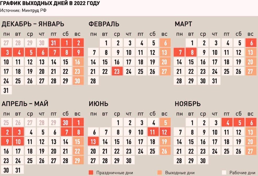 Перенос выходных в январе 2022 года