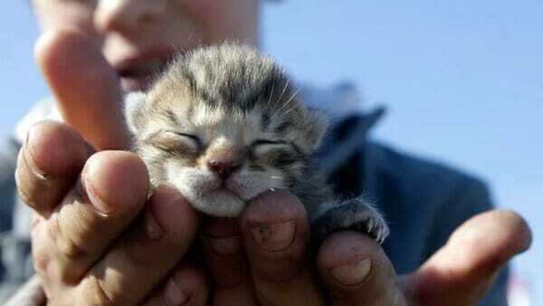 Мальчик протянул бабуле маленького пищащего котёнка.