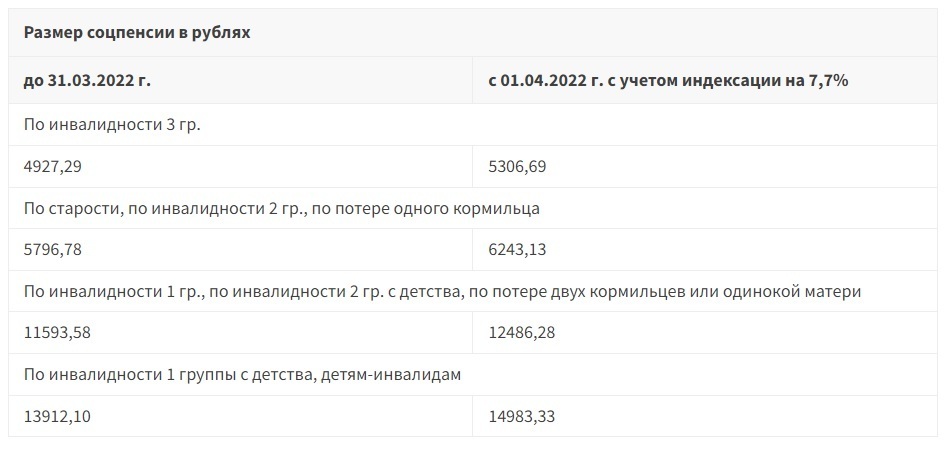 Если все-таки индексация с 1 апреля 2022 года составит 7,7%, размеры пенсий от такого повышения изменятся следующим образом: