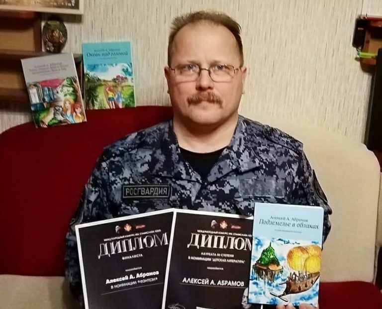 «Сотрудник вневедомственной охраны Главного управления Росгвардии по Санкт-Петербургу и Ленинградской области прапорщик полиции Алексей Абрамов принял участие в IV Большом Международном Литературном онлайн-фестивале, представив на конкурс свое произведение «Подземелье в облаках». Международное жюри, ознакомившись с произведением, вынесло решение о награждении его Международной премией им. Станислава Лемма III степени в номинации «Фэнтези»».