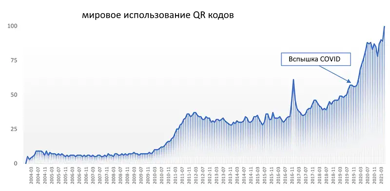 Коронавирус придал новый толчок распространению QR технологии: в 2020 году зафиксирован рост использования QR-кодов на 35% из-за своей безконтактности. Ну тут мы в курсе. Писать об этом не хочу.