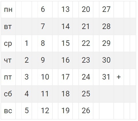 • 1, 2, 3, 4, 5, 6 и 8 января – новогодние каникулы;