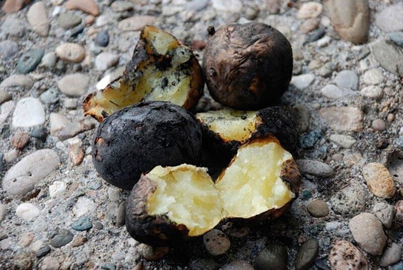 Это сегодня на костре готовят мясо, рыбу, морепродукты, а раньше такого ассортимента не было. Самый вкусный деликатес, которого ждали все дети на пикнике – печеная в костре картошка. Это же так интересно: бросил картофель в костер и стоишь, ждешь, ворочая угольки палочкой. Достаешь его с костра, а он горячий, как угли, ну ничего — дуешь, перекидываешь с руки на руку, и стараешься быстрее снять кожуру, чтобы насладиться неповторим вкусом. Боже, прям слюнки потекли.