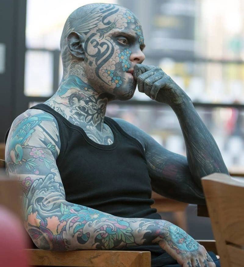 Ольга! Ну почему? Такого господина, при наличии QR кола пустят в кафе. Тату - его желание и право.