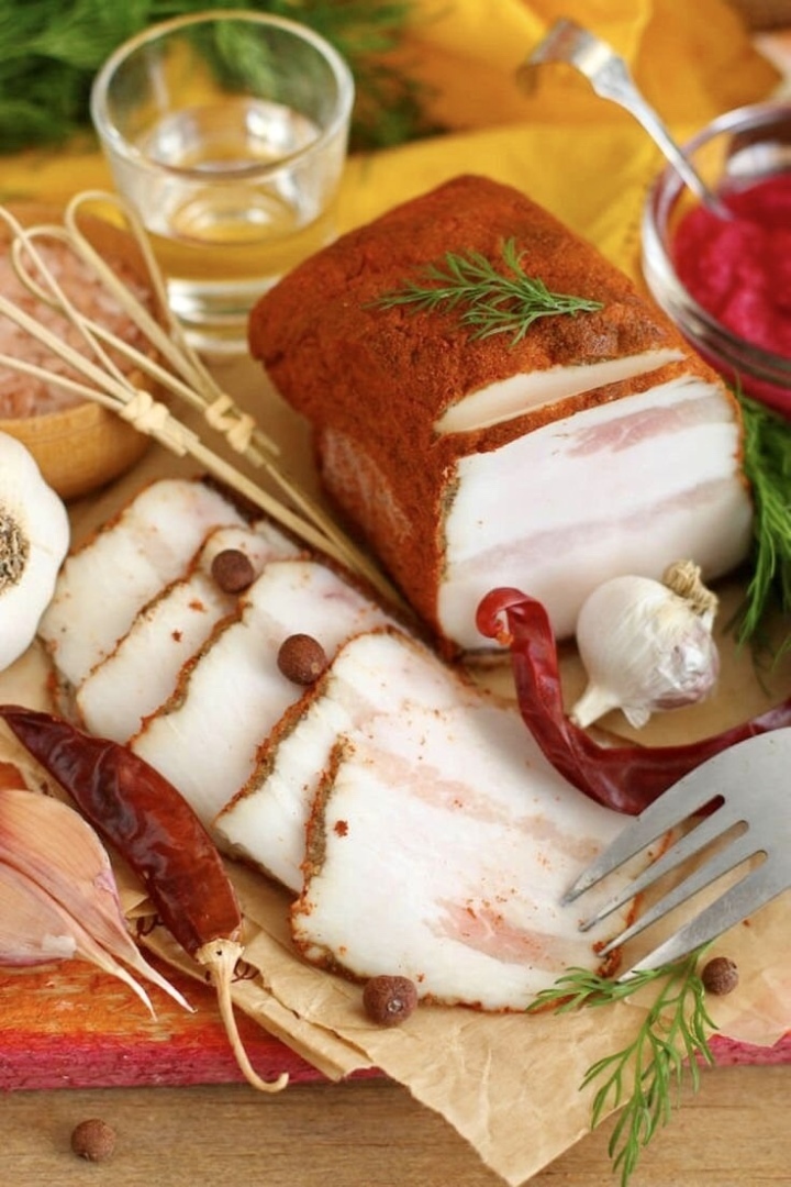 Сало вкусное и полезное. С зелёным луком, Бородинским хлебом, можно с горчицей, кто пожелает. В сале присутствуют Вит. А, Е, Д, арахидоновая кислота.