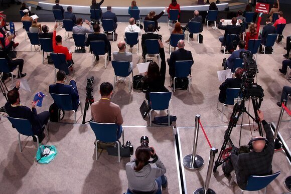 "Особое внимание при подготовке пресс-конференции нашими специалистами было уделено санитарно-эпидемиологическим требованиям", – сказала она в эфире телеканала "Россия-24".